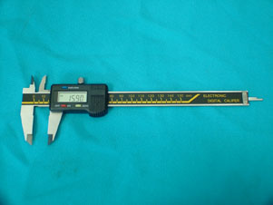 先用10mm以下的量塊或針規(guī),分別在外量面的內(nèi)、外兩處用相同測力測量,兩處顯示值相差不超過規(guī)定值(此規(guī)定值與量面長度有關(guān),普通測量范圍0-300mm的數(shù)顯卡尺,該規(guī)定值為0.02mm)。